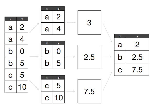 GROUP BY clause in SQL is used to arrange identical data into group with the help of aggregate functions (e.g., SUM()).So what is happening under-the-hood? Split-apply-combine.